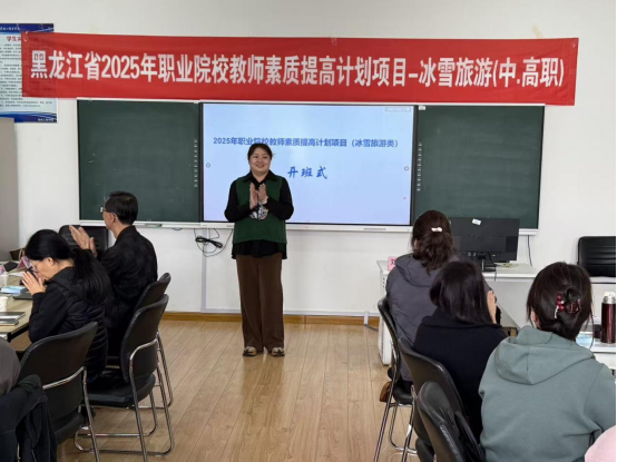 为深化职业教育改革,提升冰雪旅游类专业教师教学能力与行业适配度,助力黑龙江冰雪经济高质量发展,2025年黑龙江省职业院校教师素质提高计划项目(冰雪旅游类)企业实践培训于10月13日在我校工匠楼正式启动,来自全省25所中高职院校的教师齐聚一堂,开启为期28天的专项培训。