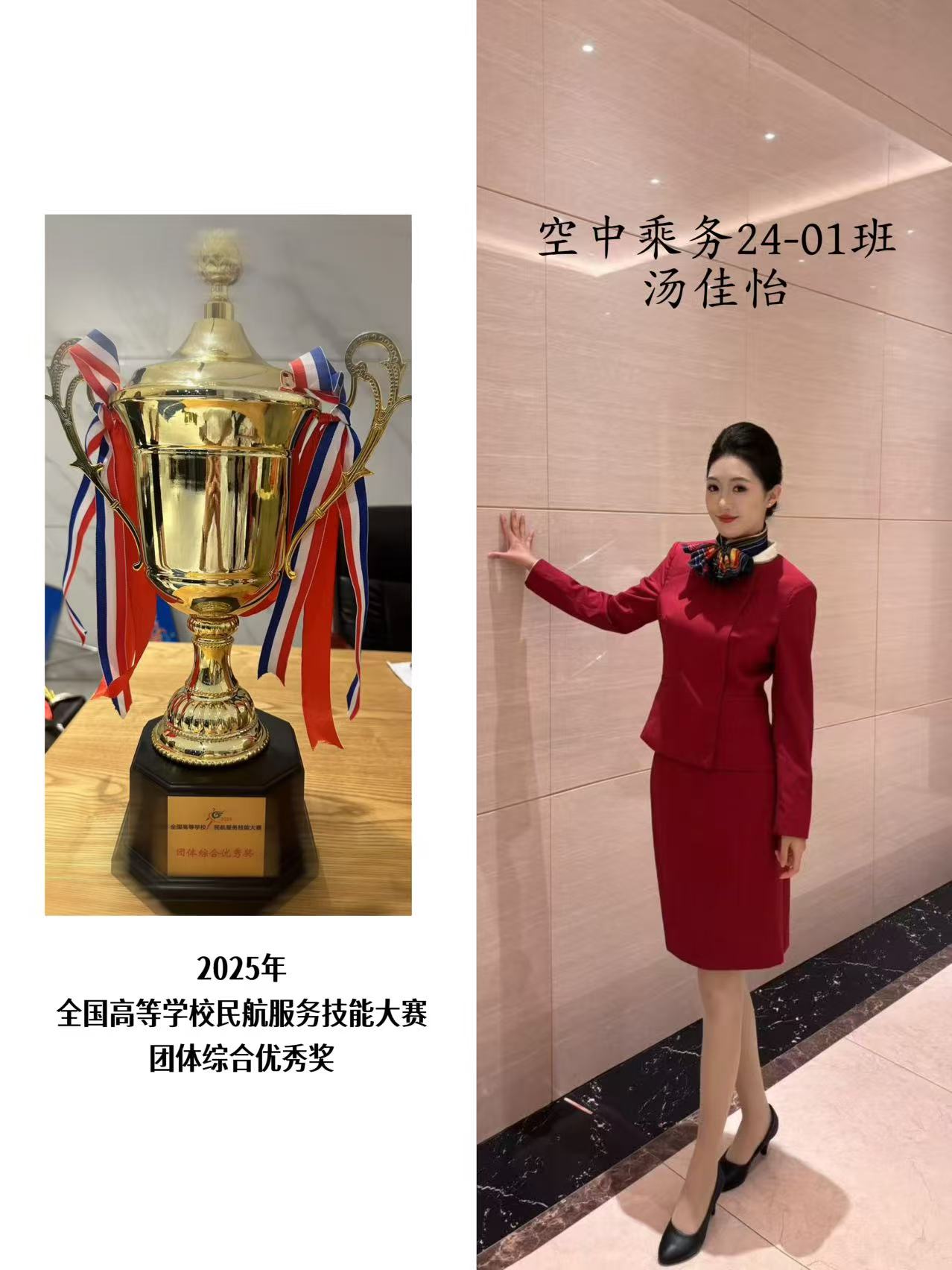 在2025年航空运输产教融合系列活动之高校大学生供需对接就业活动中,黑龙江职业学院荣获团体综合优秀奖、汤佳怡同学荣获全国高等学校民航服务技能大赛全国总决赛形象大使称号、谭晓宇同学荣获金通杯主持人大赛40强的好成绩。