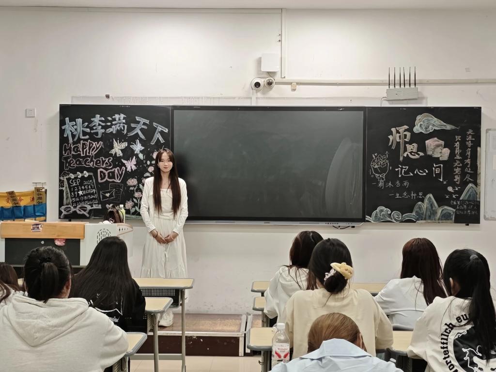 活动期间,各班级学生自发筹备“暖心氛围营造”环节:有的用彩色便利贴在教室墙面拼出“老师辛苦了”“祝您节日快乐”等字样,有的在黑板报绘制“三尺讲台育桃李”“烛光映初心”主题画,还有的准备了手写贺卡、自制书签等小巧礼物,让原本安静的自习室充满温馨气息。