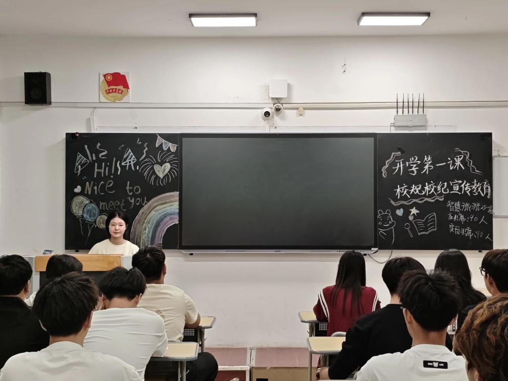 为进一步增强2025级新生的纪律意识、规范行为习惯、营造优良学风,帮助新生尽快适应大学学习与生活,9月7日晚,旅游人文学院组织全体新生班级开展以“校规校纪宣传教育”为主题的“开学第一课”特色晚自习活动。