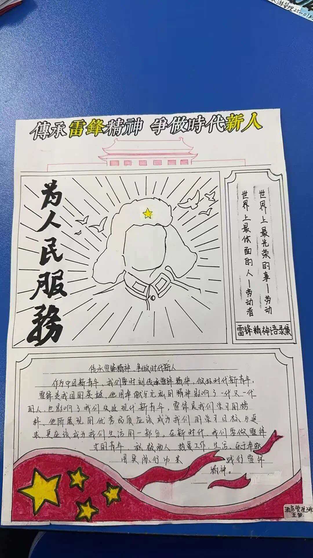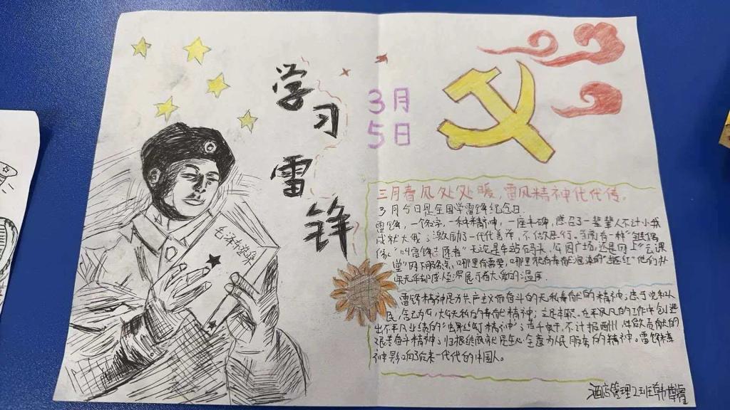 为深入弘扬雷锋精神,厚植青年学子责任担当,丰富校园文化内涵,引导广大学生以实际行动传承美德、践行初心,旅游人文学院于3月5日开展“传承雷锋精神,争做时代新人”手抄报比赛。以艺术创作搭建精神传承桥梁,让雷锋精神在校园蔚然成风。 活动中,同学们踊跃参与、精心筹备,紧扣雷锋精神核心内涵,将雷锋事迹、志愿奉献、青春担当等元素融入创作。大家认真构思版面、细致绘制图案、工整书写文字,一幅幅作品图文并茂、主题鲜明、创意十足,既展现了扎实的动手创作能力,也抒发了对雷锋精神的深刻理解与践行决心。