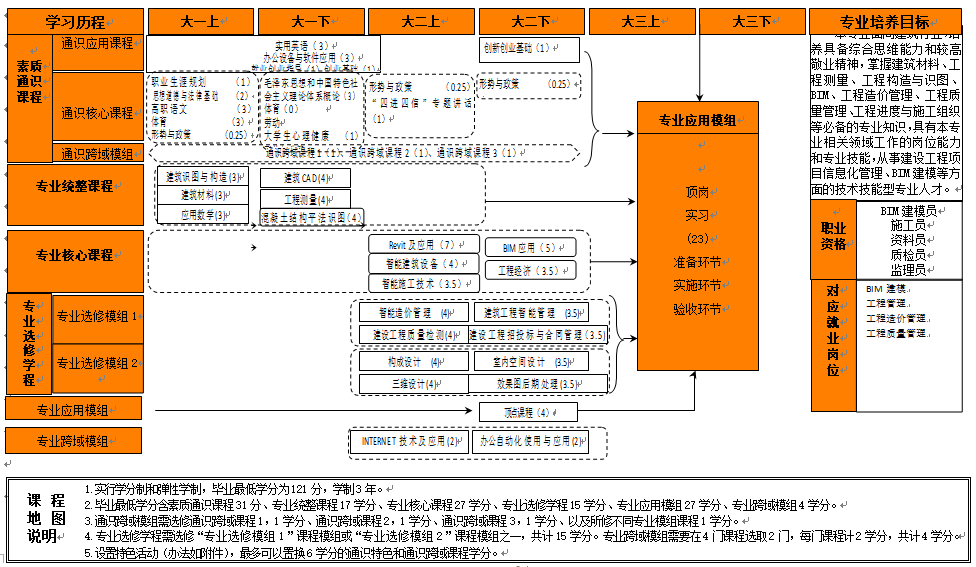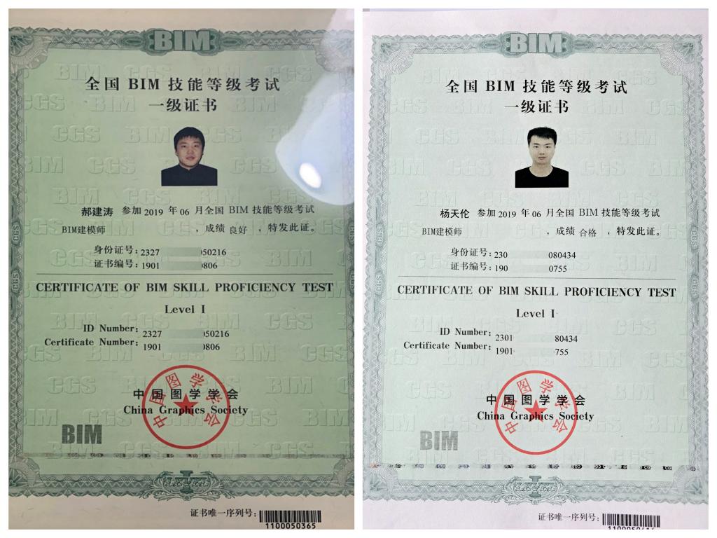 “1+X”建筑信息模型证书、BIM技术员证书、BIM建模员证书、建筑CAD中级证书、职业岗位证书(施工员、安全员、资料员、工程测量员)等。