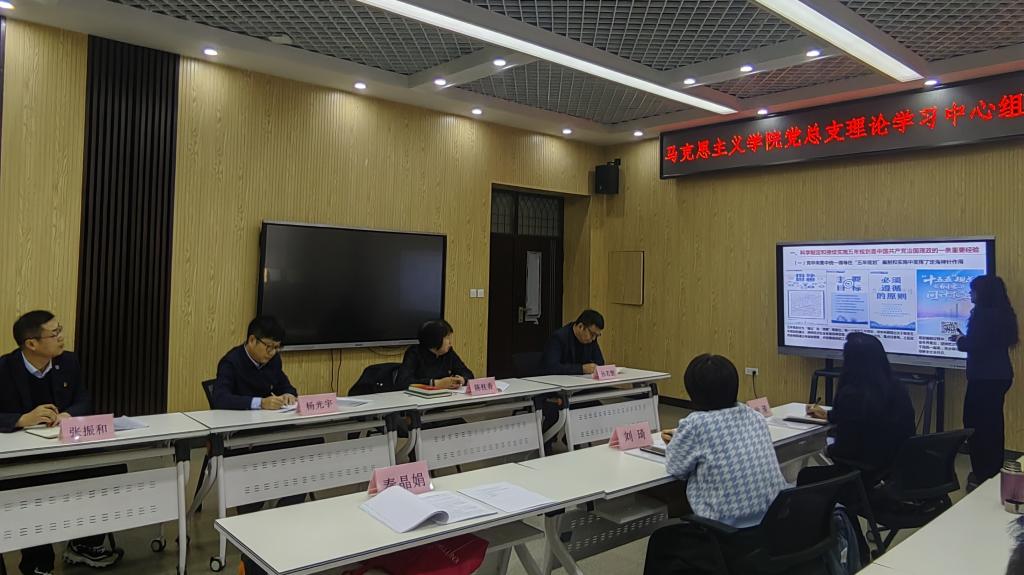 马克思主义学院“金师领航”党支部书记杨洋以《深学细悟党的二十届四中全会精神》为题,分享了科学制定和接续实施五年规划是中国共产党治国理政的一条重要经验,“十四五”时期我国发展取得的重大成就,“十五五”时期经济社会发展的系统谋划和战略部署,为在实际工作中深入贯彻落实党的二十届四中全会精神提供了有益借鉴。