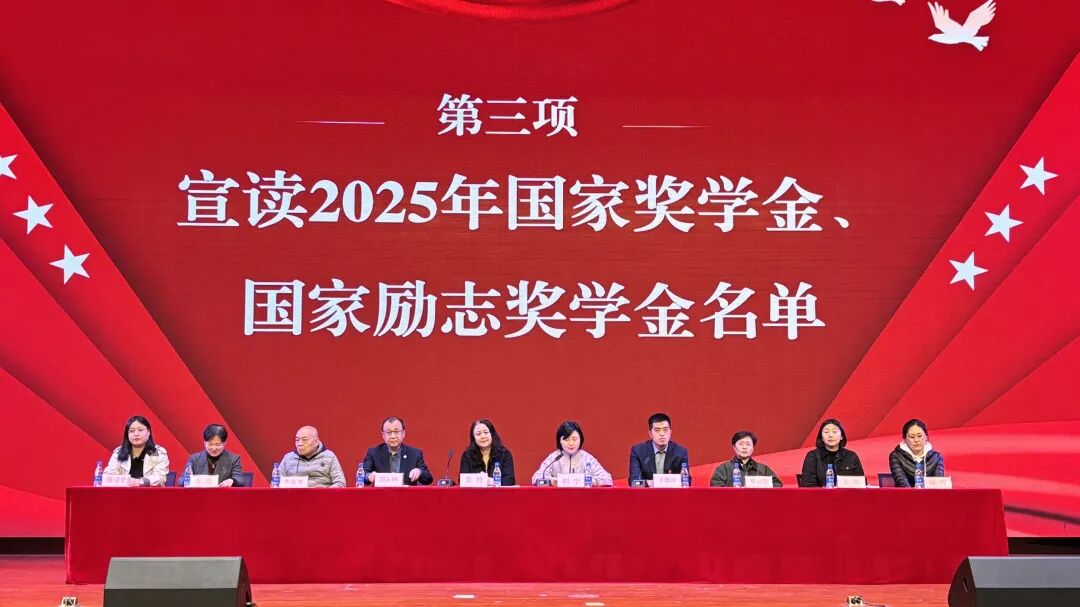 数字商贸学院院长刘宁宣读数字商贸学院2025年国家奖学金、国家励志奖学金获奖名单。
