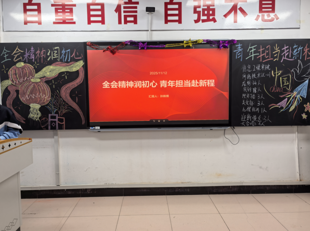 会上,大家围绕二十届四中全会核心要义展开热烈讨论,分享理论学习心得;通过案例分享、互动交流,探讨青年学子如何将个人成长与国家发展同频共振;让全会精神真正入脑入心,转化为担当作为的行动自觉。