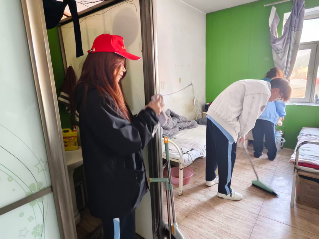 活动现场暖意融融。志愿者们分工协作,有的为老人打扫房间、整理衣物,用细致的劳动换得环境的整洁;有的围在老人身边,耐心倾听他们讲述过往岁月的故事,时而点头回应,时而轻声询问;每一个动作、每一次交流,都饱含着对老人的尊敬与关爱。