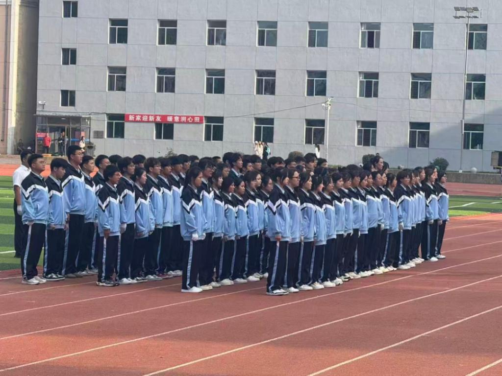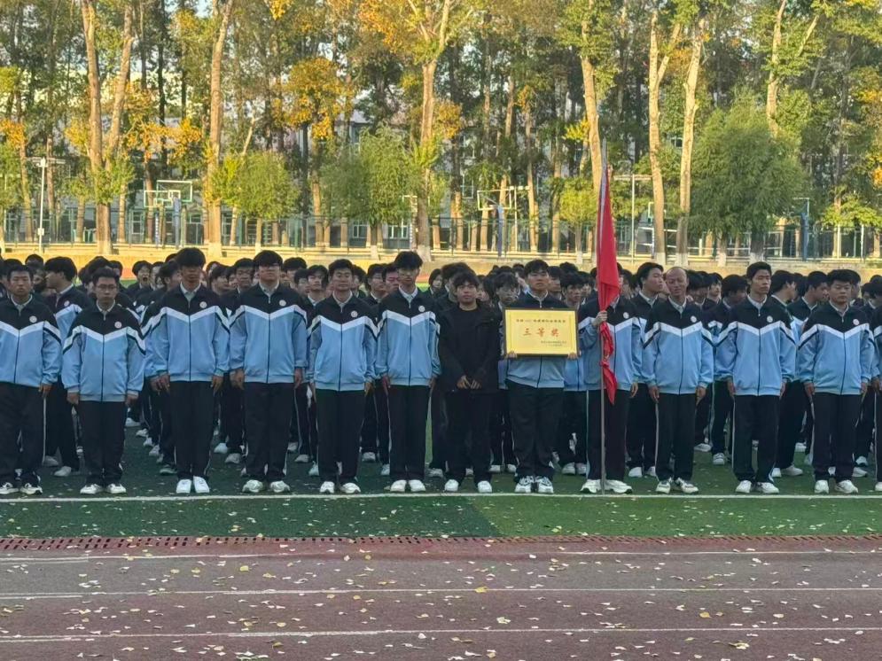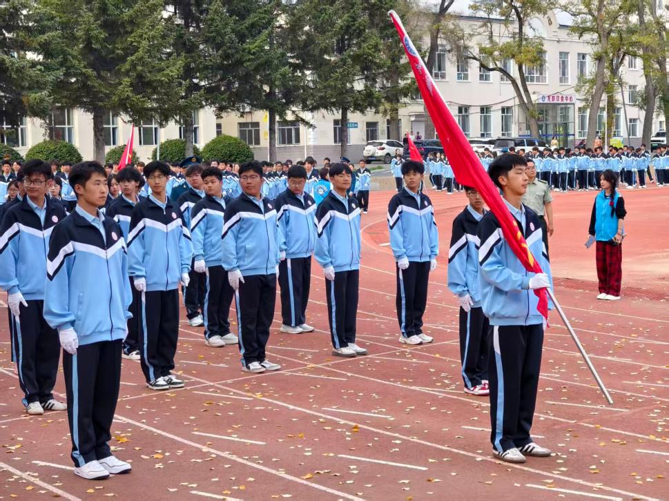 各班级列队依次登场,起步时步伐轻快稳健,踏出青春的节奏;正步时踢腿铿锵有力,落地掷地有声。挺拔的军姿、整齐的排面,将数日训练的成果化作眼前最动人的风景,尽显新生们的朝气与纪律性。