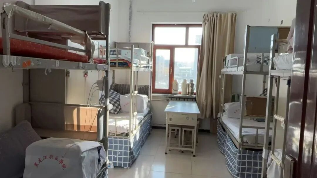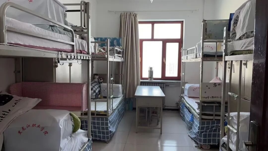 推开宿舍的房门,整洁感扑面而来:床铺被褥叠放整齐如豆腐块,地面扫拖得一尘不染,就连衣柜角落也清理得干干净净,处处透着清爽利落。