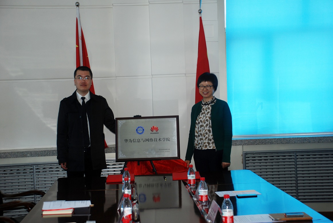 随后,王明海和彭睿签署了《华为信息与网络技术学院项目校企合作协议》。于沐琳和曾文化共同为“华为信息与网络技术学院”揭牌。