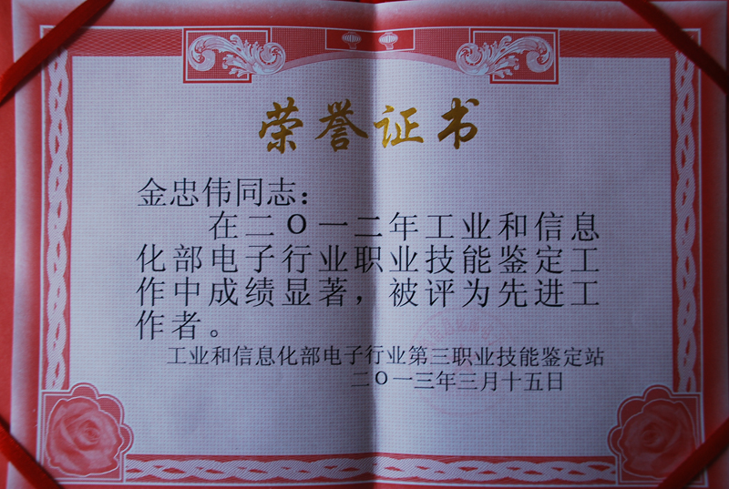 4、表彰、奖励黑龙江省电子行业职业技能鉴定先进单位和先进工作者。