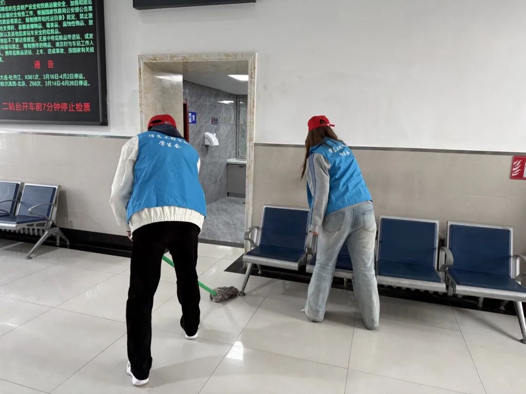 2026年3月18日,信息工程学院团总支在双城堡火车站开展学雷锋志愿日主题志愿行动,以实际行动传承雷锋精神,展现青年学子责任担当