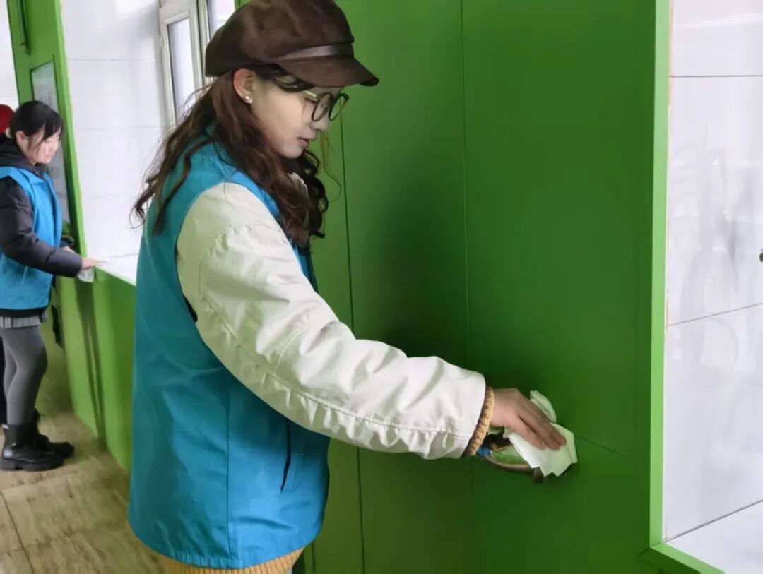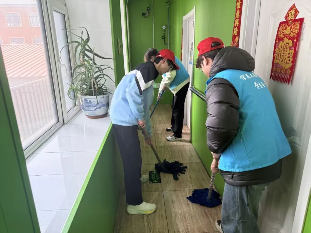 活动现场,志愿者们分工明确、干劲十足,仔细拖拭地面污渍,细致清扫角落灰尘,认真擦拭扶手与设施表面,将敬老院的每一处角落打扫得干干净净、焕然一新。