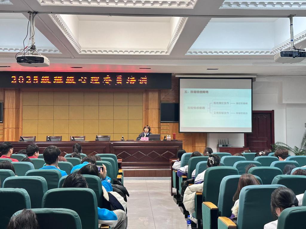 班级心理委员是校园心理健康防线的重要基层力量,其专业能力直接关系到同学们的心理成长与校园和谐。为进一步提升班级心理委员的专业素养与工作能力,充分发挥其桥梁纽带作用,我校于2025年11月10日至12日在清华楼经济报告厅开展了班级心理委员专题培训活动,二校区同步视频参加培训。