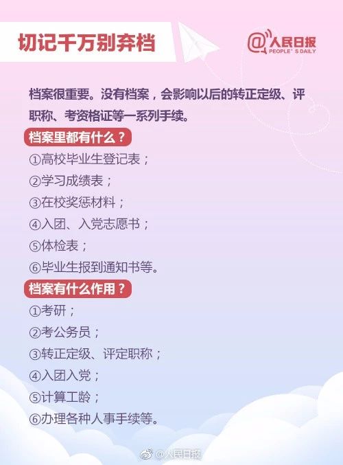 2018毕业季已经进入倒计时,各种证件发放、手续办理一股脑涌来,常常让人一头雾水!即将离开校园,最后一步你还需做好这些事:①各种证书复印、扫描;②妥善安置档案,千万别弃档;③及时领取保管好报到证;④处理好党组织关系转移……以下手续千万记住!!!