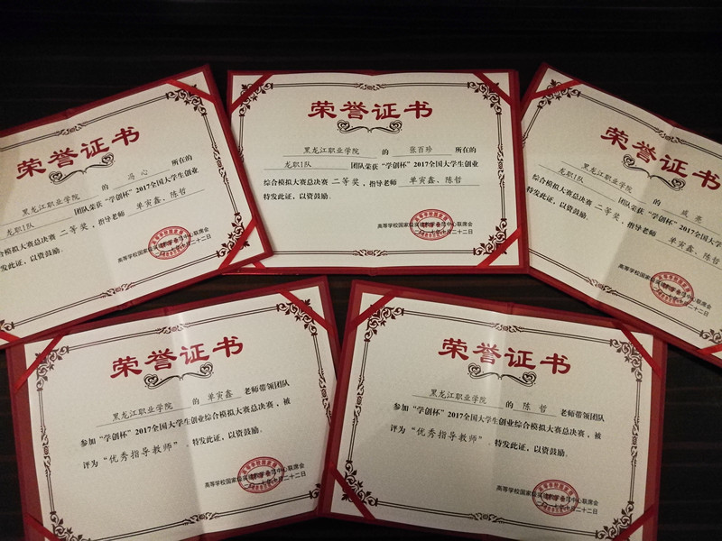 10月21日—23日,“学创杯”2017全国大学生创业综合模拟大赛在湖北经济学院落下帷幕,由工商管理学院单寅鑫、陈哲老师指导,冯心、咸亮、张百珍三名同学组成的黑龙江职业学院代表队,在比赛中荣获全国二等奖的优异成绩。
